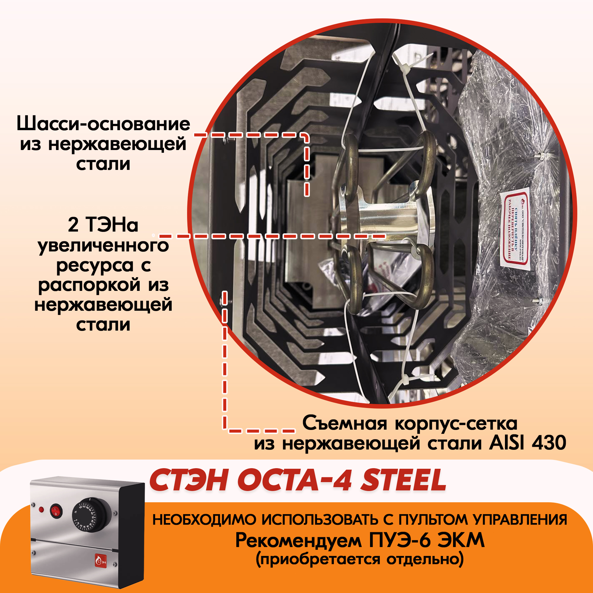 Электрическая каменка СТЭН ЭКМ 4 Octa steel в Сыктывкаре | Доставка по России