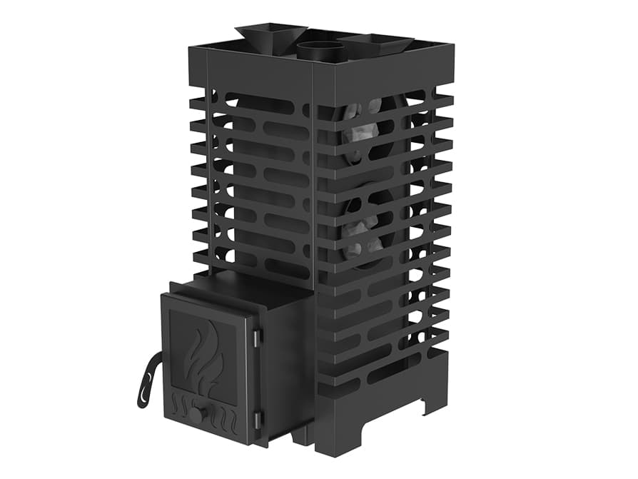 Стальной кожух-конвектор значительно ускоряет нагревание воздуха в парилке за счет образуемого им мощного воздушного потока.