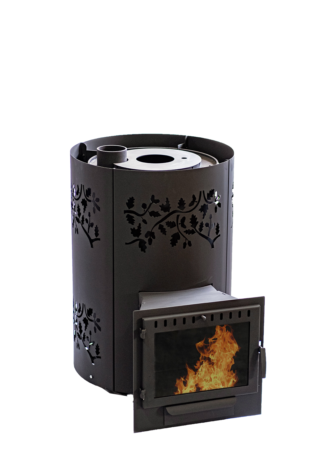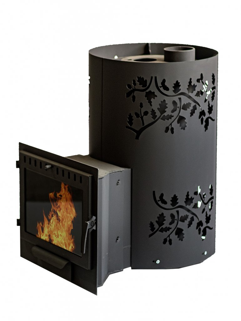 Банная печь «Дубрава» представляет собой стальную конструкцию, выполненную в круглой форме, позволяющая максимально эффективно нагревать парильное и смежные помещения в бане. Отличительной особенностью данной модели является ее уникальная закрытая каменка, которая равномерно нагревается за счет использования винтовой системы дымохода. Внутри каменки нагнетается высокая температура, которая позволяет с высокой скоростью производить нагрев имеющихся камней и удерживать ее на протяжении длительного периода времени. Печь выполнена из стали толщиной 6мм и облицована конвекционным металлическим кожухом, защищающим от инфракрасного излучения.