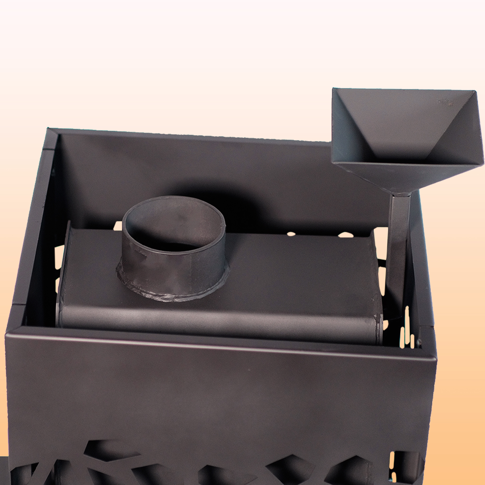 Эффективное расположение открытой каменки прямо над верхней частью топочной камеры позволяет быстро и эффективно нагревать камни, что обеспечивает нужную температуру и пар в парной.