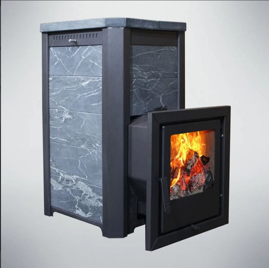 Варвара Сказка сочетает в себе привлекательный внешний вид и эффективную конвекционно – аккумулирующую печь, способную за короткое время прогреть помещение и оставить его теплым в течении продолжительного времени. Облицовка натуральным камнем убирает инфракрасное излучение, исходящее от корпуса печи, а регулировка конвекции предотвращает уменьшение влажности во время банных процедур, что создает мягкий и комфортный микроклимат в парной.
