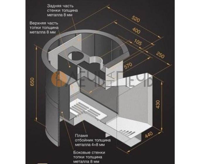 Печи из модельного ряда Лава обладают способностью быстрого и равномерного прогрева банного помещения, благодаря наружному кожуху-конвектору, который при нагреве образует мощный конвекционный поток. Топка печи выполнена из специальной конструкционной стали толщиной до 12 мм. Сталь благодаря своей устойчивости к высоким температурам не подвергается деформации. Топочная дверца изготовлена из высококачественного чугуна. Длинная колосниковая решётка из массивного литейного чугуна, обеспечивает равномерное горение дров, столь необходимое для банной печи. Выдвижной зольный ящик позволяет удалить накопившуюся золу, не прерывая горения и эффективно регулировать его интенсивность. Все эти характеристики позволяют утверждать, что эту модель можно считать самой скоростной печкой по прогреву парильного помещения.