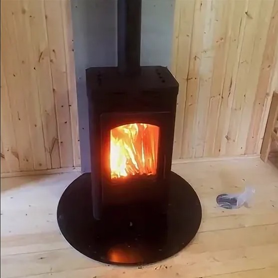 Фундамент для печи не требуется. Достаточно огнеупорной плиты или листа из жаростойкой стали.