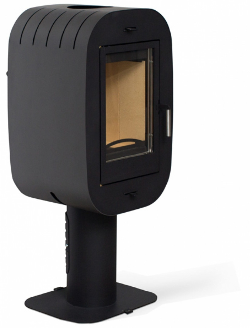 Компактная дизайнерская печь. Может устанавливаться свободно в помещении без примыкания к стене. Оригинальный дизайн делает печь доминантой в небольшом клубном помещении - бильярдная, бар, музыкальная комната. Подходит для обогрева небольшого помещения площадью 30-60 м2. Дверка высотой 310 мм. Размер поленьев 30-32 см вертикально. Подсоединение к дымоходу сверху. Система очистки «чистое стекло».