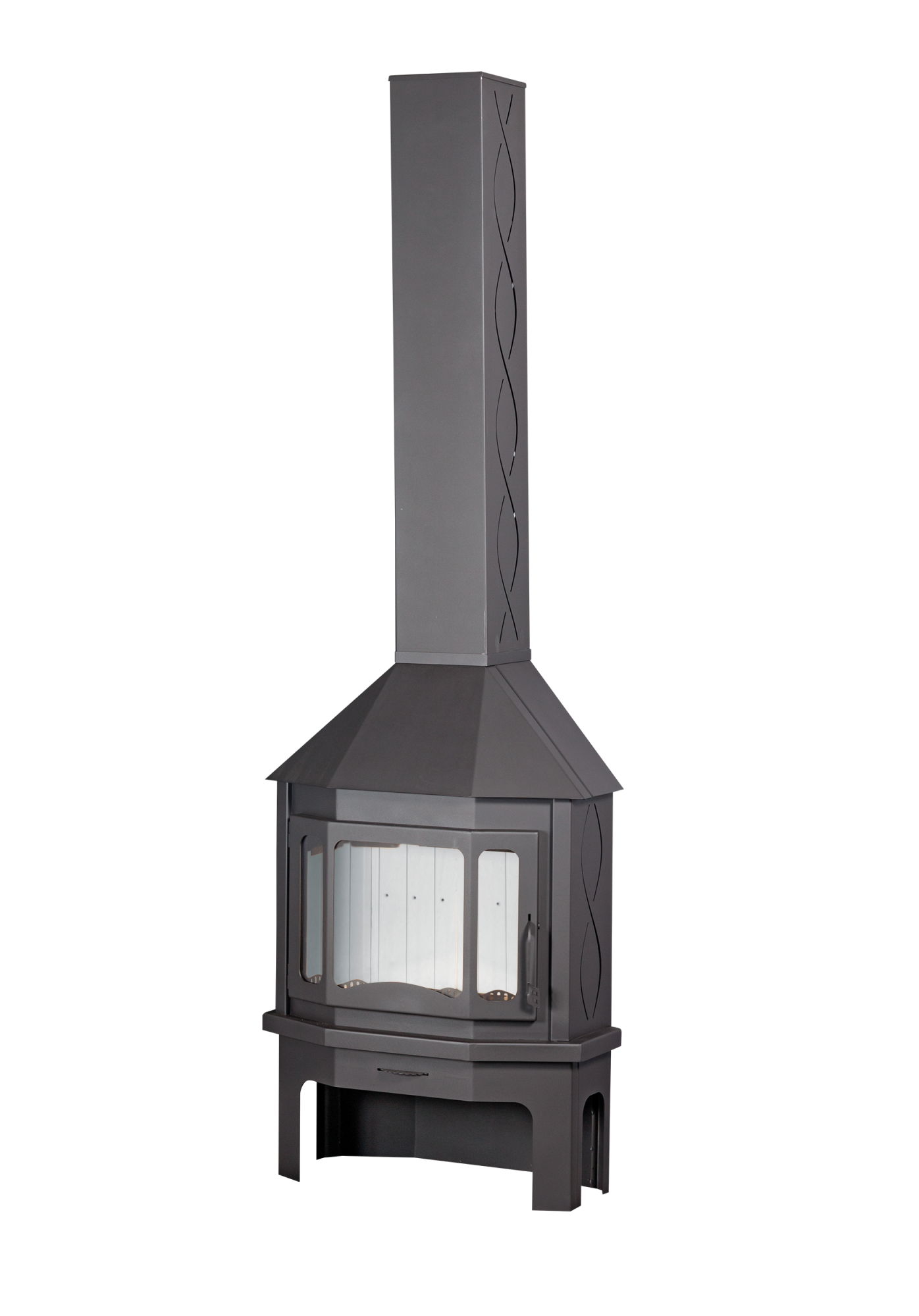 Печь-камин Мюнхен - недорогой готовый вариант углового камина из металла в стиле хай-тек.