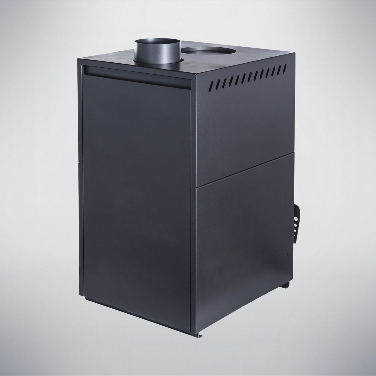 Диаметр патрубка для дымохода составляет 150 мм, подключение системы отвода дыма – верхнее.