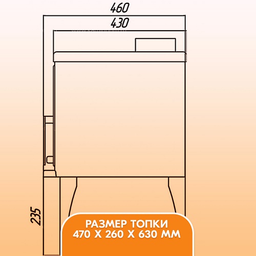 Конструкция печи-камина также оснащена дверцей со вставкой из специального жаростойкого стекла, создающей возможность наблюдать за янтарными переливами пламени.