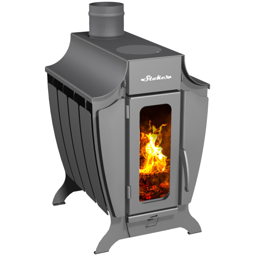 Stoker 100-G - это дровяная отопительная печь длительного горения с возможностью подключения газовой горелки для магистрального природного газа, либо горелки для сжиженного природного газа из баллона.