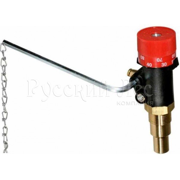 Регулятор тяги для твердотопливного котла предназначен для регулирования температуры теплоносителя посредством открытия и закрытия заслонки забора воздуха. При горении твердого топлива и нагреве теплоносителя жидкость внутри элемента расширяется и воздействует на исполнительный механизм и рычаг, преодолевая силу упругости пружины. Рычаг ослабляет цепочку, заслонка начинает закрываться и уменьшать проходное сечение. В топку поступает меньше воздуха, процесс горения замедляется.Температура воды в котловом баке снижается, жидкость сжимается и возвратная пружина заставляет рычаг снова открыть заслонку посредством цепочки. Цикл повторяется, пока дрова в топливнике не прогорят полностью, тогда пружина открывает дверцу максимально широко.