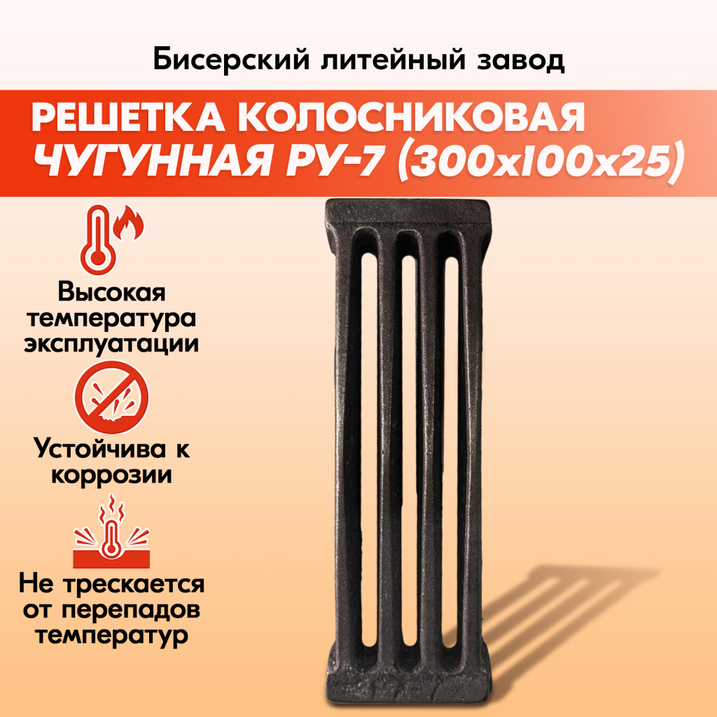 Решетка колосниковая РУ-7 (300х100) для печи и котла,правильные колосники для котлов, печное литье для печи