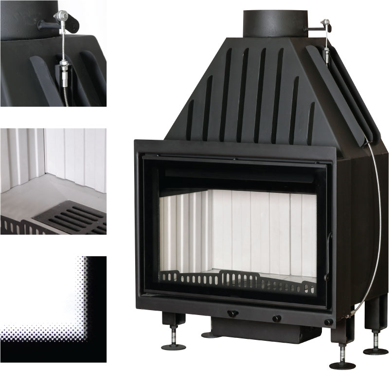 Обеспечивает подачу воздуха на горение с улицы или нежилого помещения (например подвала) прямо в топочную камеру. Благодаря этому, количество кислорода в помещении не уменьшается, не происходит падения давления в помещении, а значит - камин не дымит, а окна можно держать закрытыми.