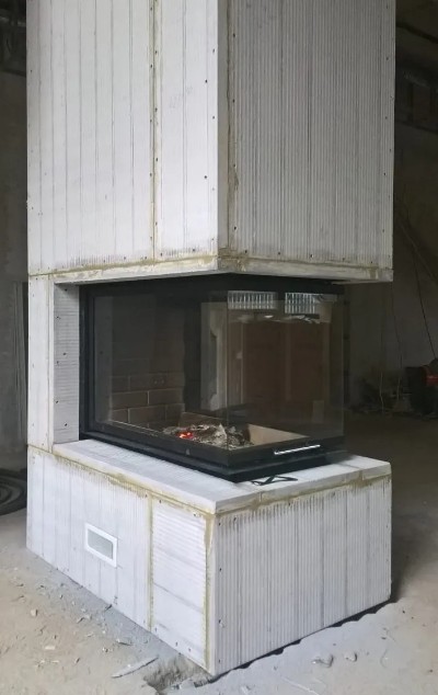 Дверь каминной топки декорирована плоским стеклом. Такие стекла делаются всего в 2 странах: Германии и Японии. Оно выдерживает температуру до 750 градусов. Но если ударить кочергой, то может треснуть. Через стекло любуются огнем и следят за прогоранием дров и подкладкой новых.