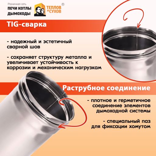 Печная труба от Теплов и Сухов герметична и в процессе эксплуатации не лопается.
