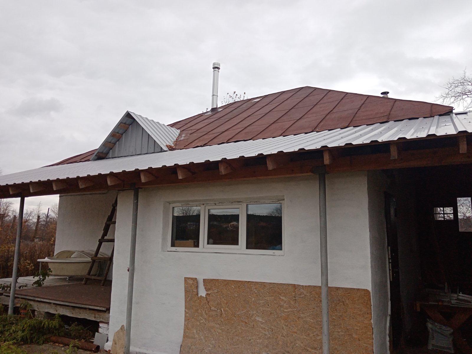 Установка печи-камина Бахта и монтаж дымохода.